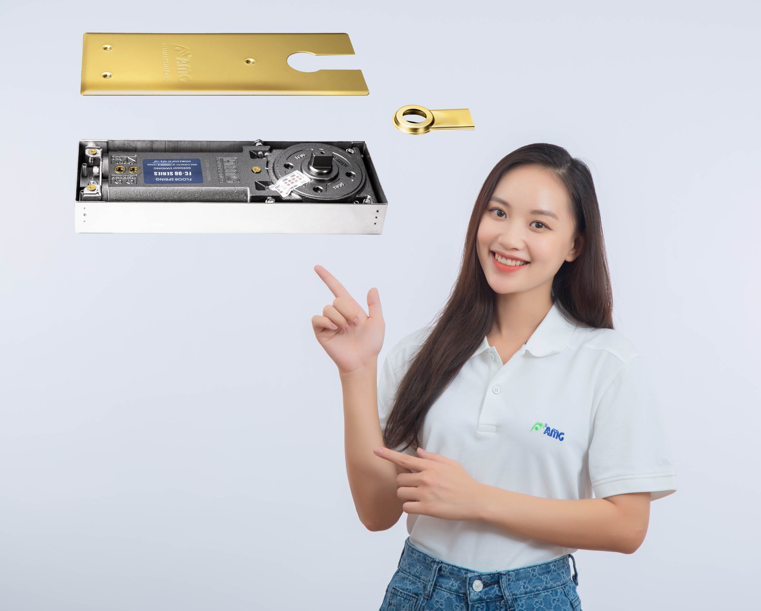 BẢN LỀ SÀN CỬA THỦY LỰC AMG MẠ VÀNG PVD CAO CẤP FC06Gold