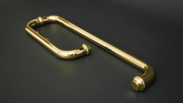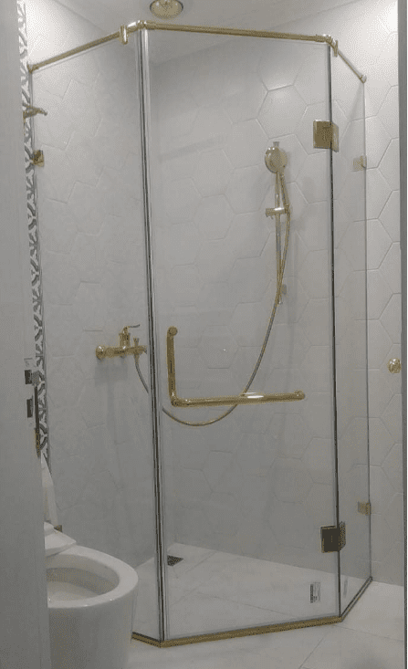 _ Với lớp mạ PVD hoàn hảo vàng bóng giúp tôn lên vẻ cao cấp sang trọng của bộ tắm kính cửa bạn